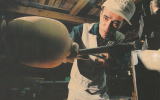 <南日本新聞(1997年4月3日掲載)より抜粋> 屋久島の南に位置する屋久町中間の出身。 そこから望む山々をたとえて「岳南」という。 二十一年前、初めて屋久杉の声を聞いた。 父親に「そろそろ戻って来んか」と言われて、何をするかも決めないまま、関西から帰郷。 友達に連れられて入った屋久杉工芸店で「違う」と声がした。 店を見て回るうち今度は工芸品の一角から、はっきり同じ声が。 そして店を出るとき、念を押すように背後から「違う」。三たび屋久杉が語り掛けた。「このとき『屋久杉と付き合っていこう』と決めた。 屋久杉を通じて生かされていることを確認していきたい、と」。なりわいにしようとは思わなかった。 関西での仕事は、高級紳士靴下の製造で木工など一度も手掛けたことはない。それでも「やろう」と決めた。 すべて手作業。機械などはない。 世間で屋久杉工芸がどんなシステムで作られているかも知らなかった。 感覚、技術を磨く日々が続く。大きな屋久杉をカンナで削り、バイト(刃物)で形を整えていく。 根を詰めすぎて動かなくなった手首を包帯で縛り、それでも創作を続けていく壮絶な作業だった。 屋久杉工芸は組合を通さなければ、いい木材が手に入らない。 そんな“商売”の基本的なこと、組合の存在さえ、創作を始めてから三年して初めて知った。「屋久杉の望む姿に」が一貫した仕事ぶり。そのための 工夫と努力で技術は向上したが、「売ろう」という気持ちはわかなかった。 「事情を許せば全部手元に置いておきたいくらい。ぼくと屋久杉の気持ちを理解する人に大事に使ってほしい」。仲間は「気違い」と呼んだ。 「屋久杉は、たった1.5cmに百年の年輪を刻んでいる。 たった四十、五十年しか生きていないわれわれの都合でどうして望みもしない形に変えられようか」 一つひとつが個性的な屋久杉が求める姿は多種多様だ。 「一ミリでも削りすぎると理想の姿にはならない。 仕上げの段階になると、人さし指と中指の感覚だけが頼り。 “繊細”な神経が求められる」という。 |